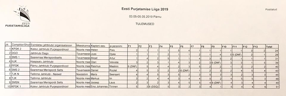 Nendes oludes suutis kõige stabiilsemat ja vigadevaba sõitu teha Kalevi Jahtklubi Purjespordikooli noortevõistkond, kus roolis Helen Pais. Kolm esikohta ning teine ja kolmas koht esimese päeva skoorile lisaks andis kokku 24 punkti ja magusa regativõidu. Juss Ojala roolimisel Jahtklubi Dago meeskond oli konkurentsis kuni viimase sõiduni välja, kuid natuke ebaõnne ja ühest sõidust saadud karistuse kandmise eksimus andis teise päeva skooriks 4-5-6(DNF)-2-1 ning kokku 28 punkti.