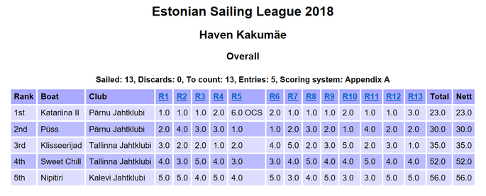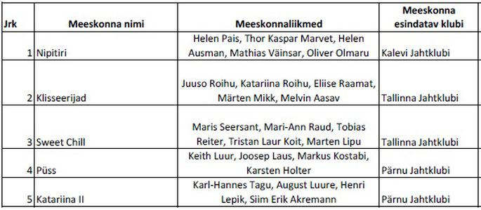 Oodatult näitas oma avamerepurjetamise ja meeskonnatöö kogemust Katariina II meeskond Karl-Hannes Tagu juhtimisel, ületades neljateistkümnest peetud sõidust kaheksal finišiliini esimesena. Kolmel korral võttis aga sõiduvõidu Keith Luuri – saavutanud rahvusvahelisi noorteklasside tipptulemusi nii merel kui jää peal purjetades – meeskond Püss Pärnu Jahtklubi Purjespordikoolist.