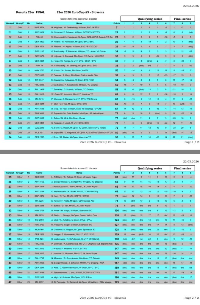 29er EuroCup 2026 sarja kolmas etapp toimus 19.–22. märtsil Sloveenias Koperis, kus Euroopa tipptiimid kogunesid neljaks võistluspäevaks. Kümnest etapist koosnev sari algab Hispaanias ja lõpeb Hollandis ning toob kokku sportlasi nii Euroopast kui ka kaugemalt. 2025. aastal osales EuroCupil rekordarv tiime, lausa 399 paatkonda 26 erinevast riigist.