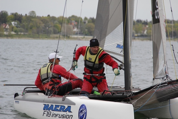 F18 katamaraanil seilavate 6 meeskonna hulgas ei ole liidripositsiooni käest andnud Uku Kuusk ja Aivar Soo (EKL). Teisena jätkavad Jüri Saarnak ja Vahur Teder (KJK) ning kolmandana nendega võrdsete punktidega Andres Laul ja Ain Roosma (EKL).